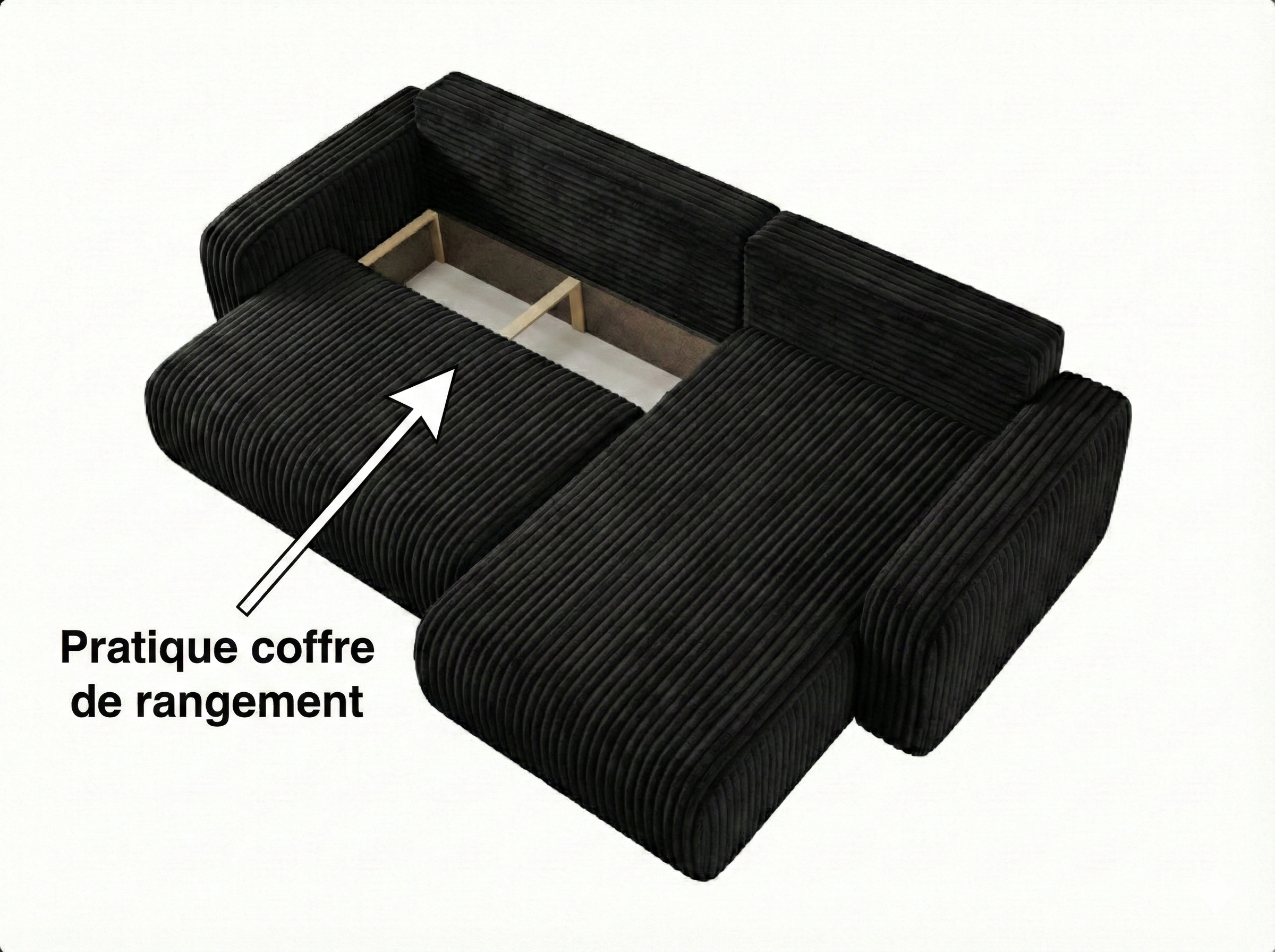 Format XL : Sa configuration en angle avec une méridienne large invite à la détente absolue, idéale pour les grands espaces de vie.