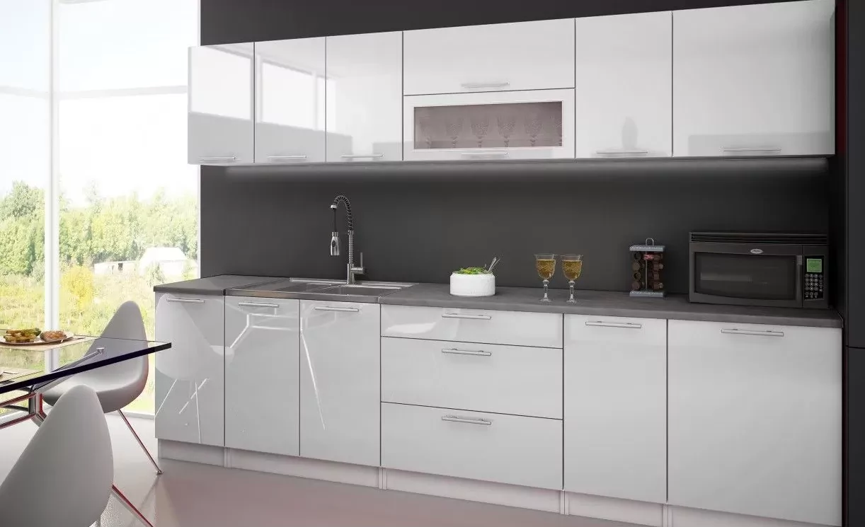 Cuisine complète 300cm blanc laqué avec plan de travail 28mm